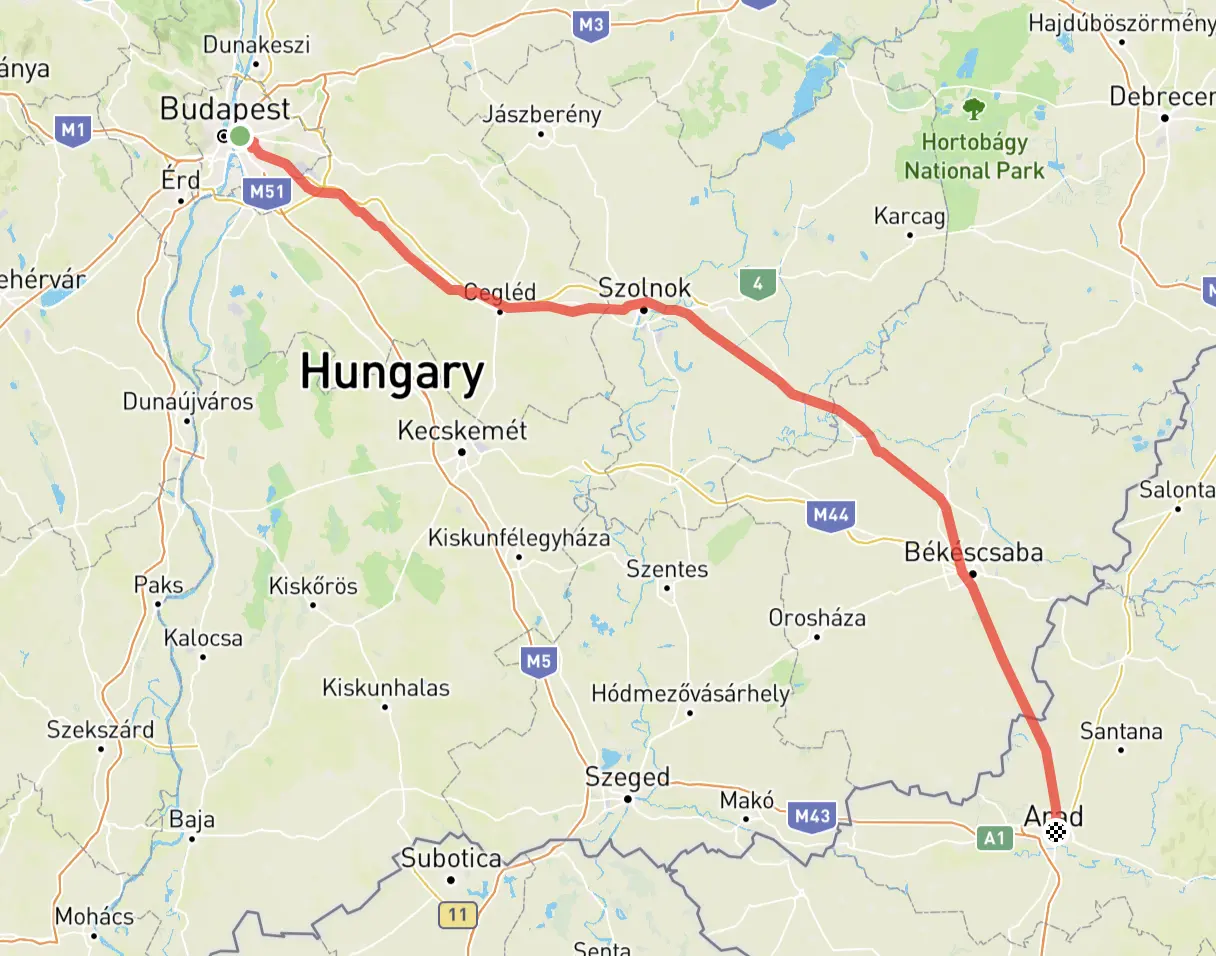 Arad, der Abfahrtsort, liegt direkt hinter der Rumänischen Grenze.