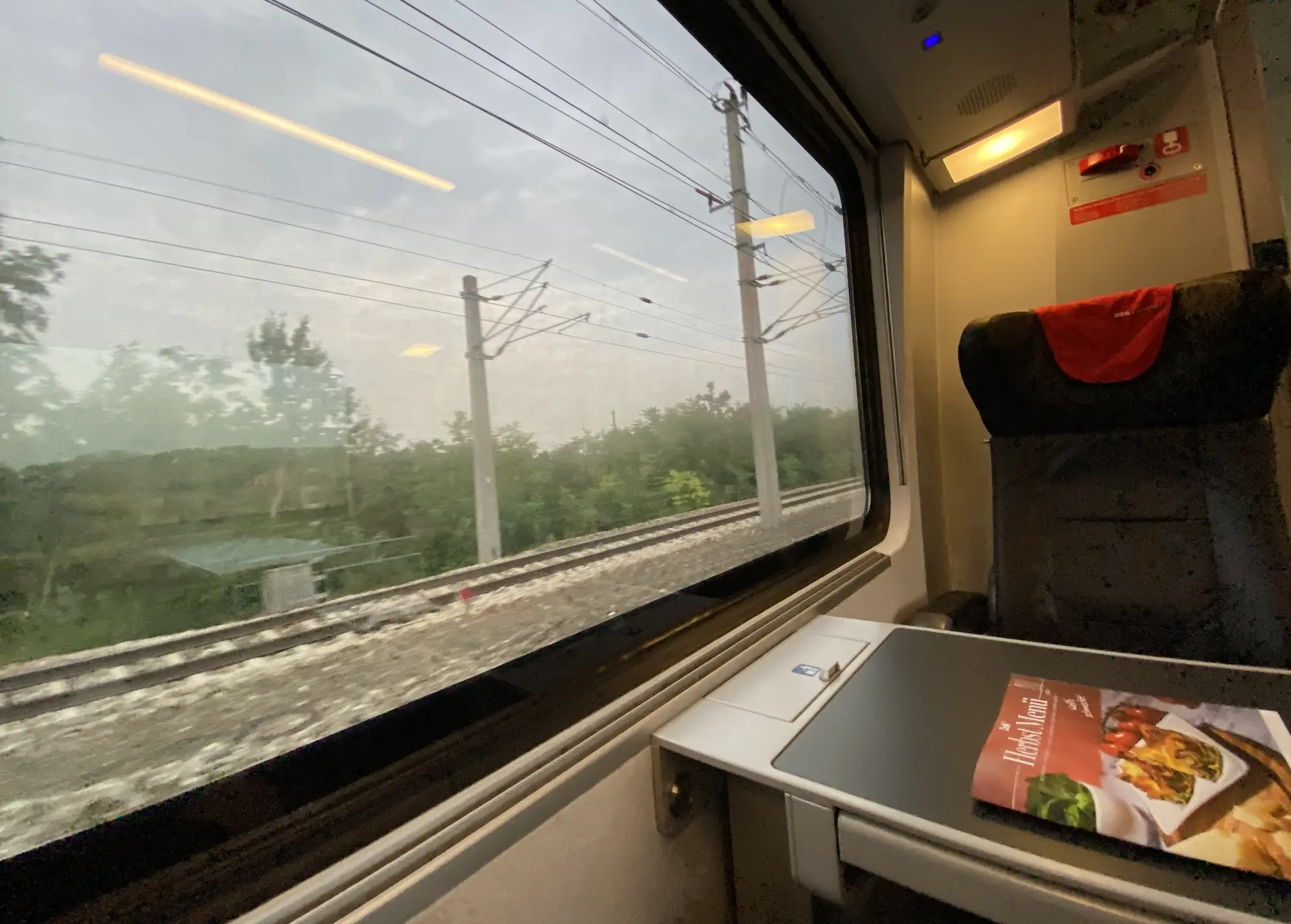 Ich wackel also zum Bahnhof, finde wieder eine erste Klasse vor und mache es mir bequem. Die Fahrt dauert leider nur 15 Minuten.